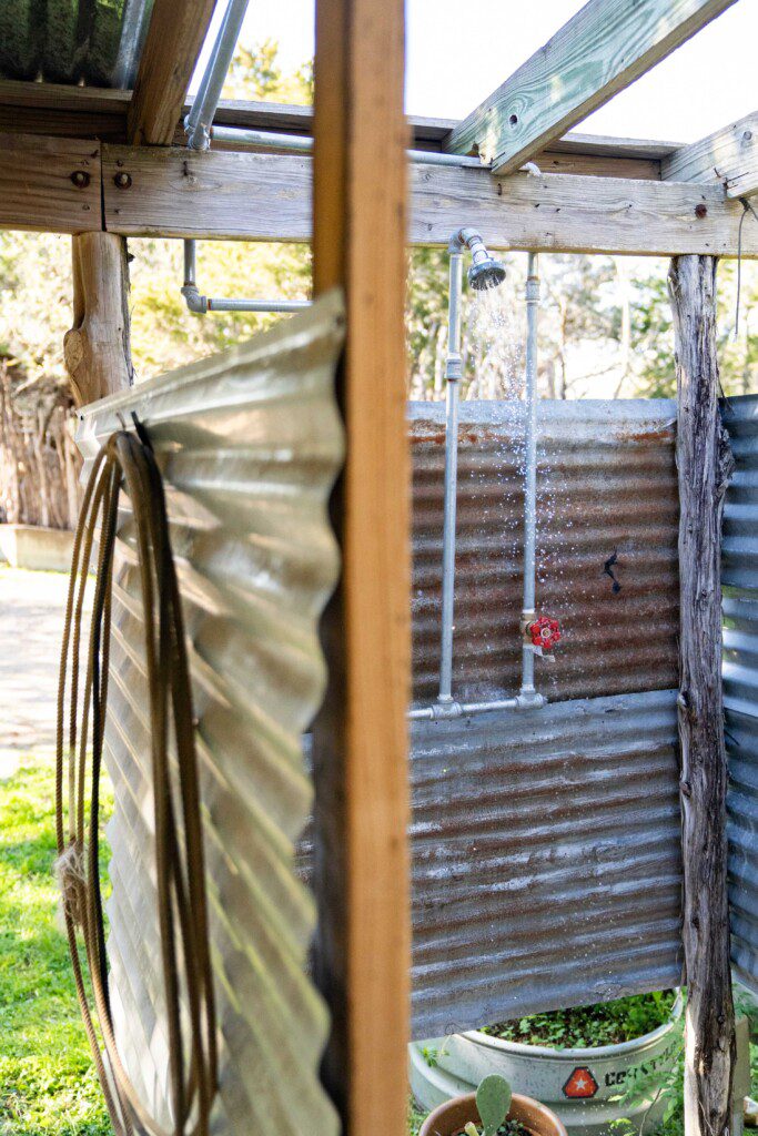 🚿 Private Outdoor Shower – A corrugated metal enclosure adds to the rustic charm