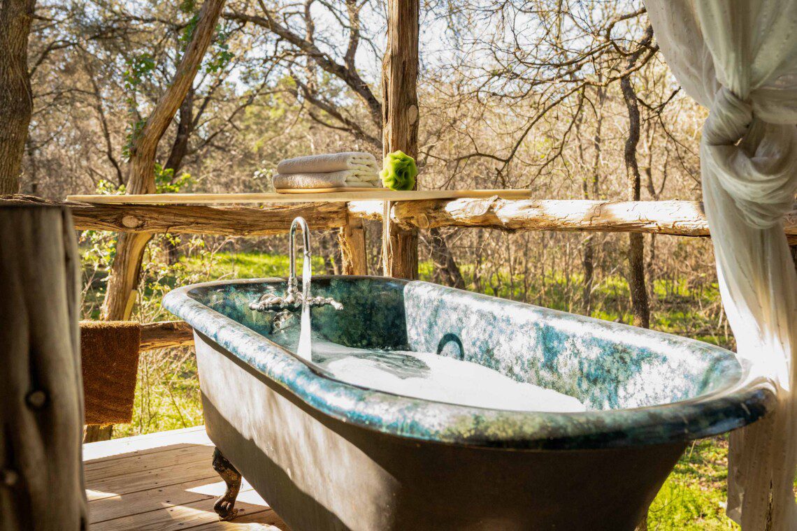 🛁 Rear Porch – Relax in a mermaid-inspired clawfoot tub with a glass of wine under the stars